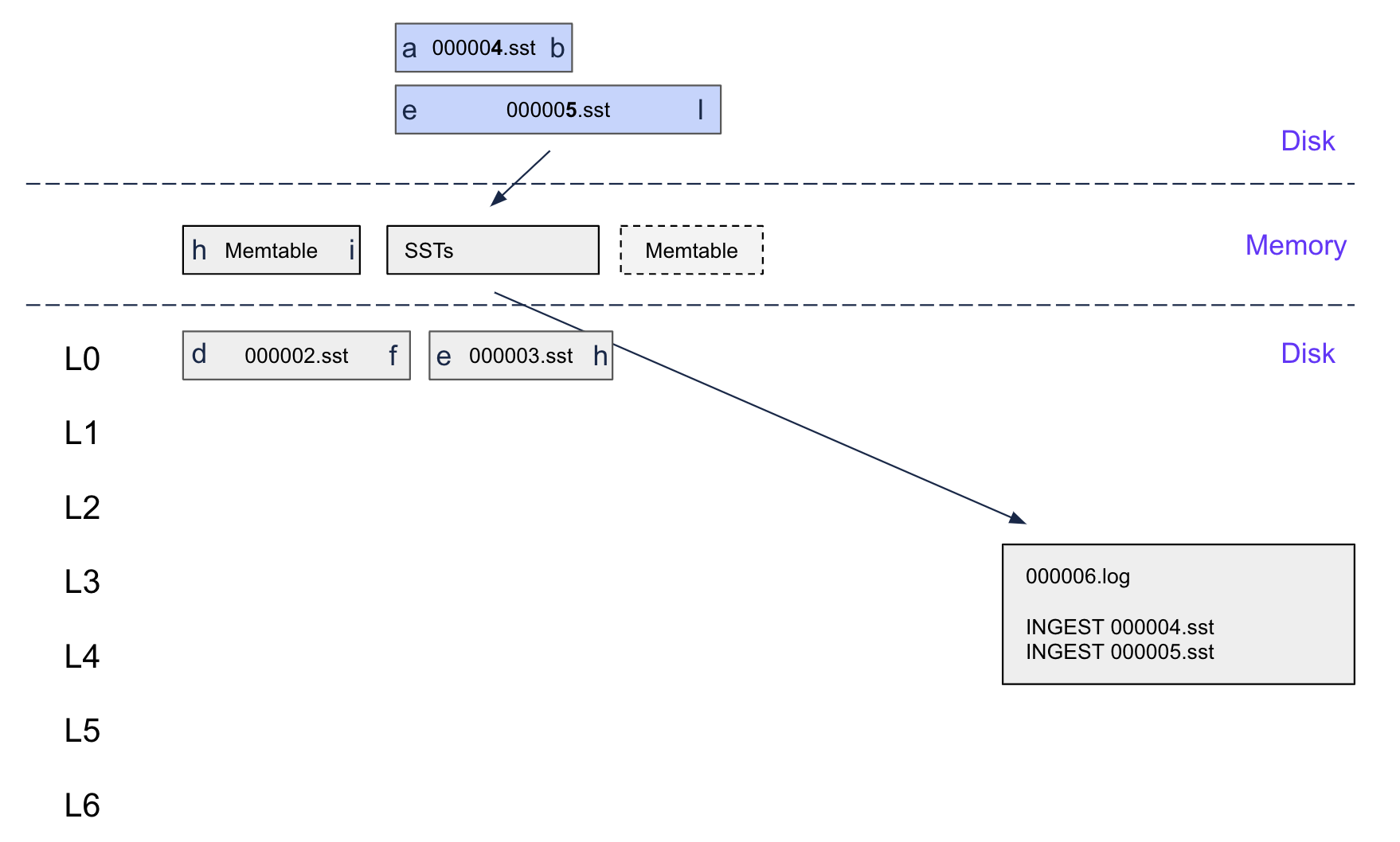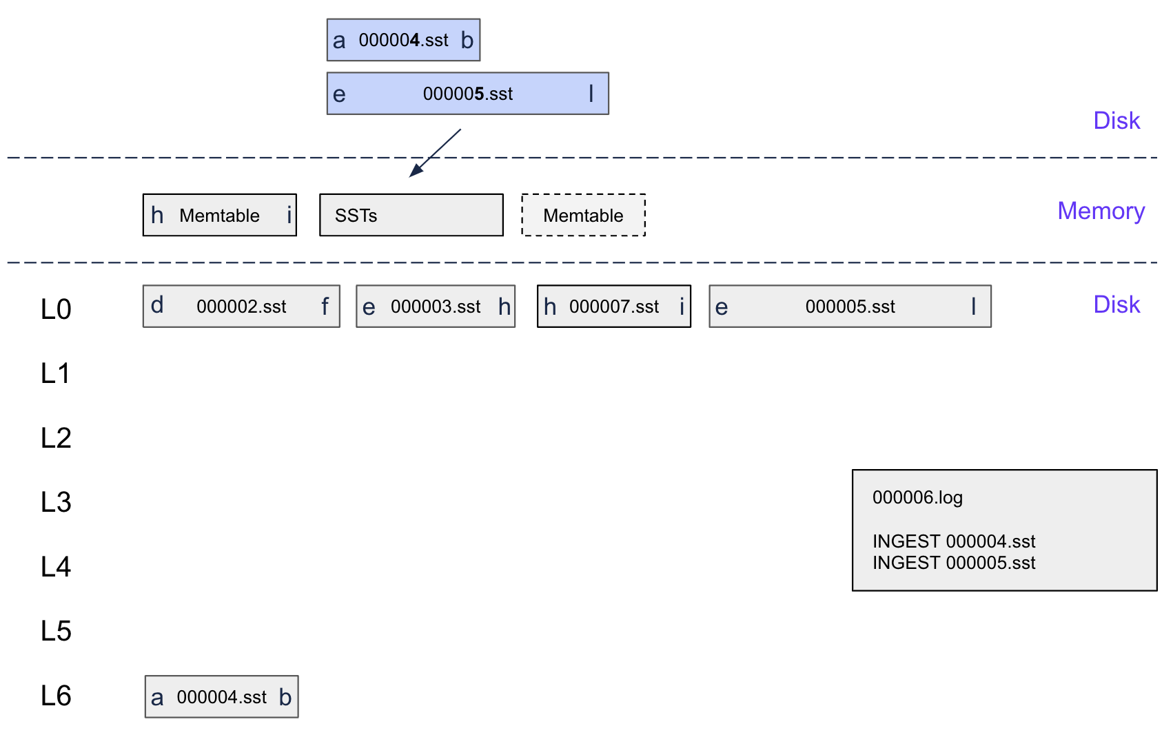 (Note: 000005.sst and 000004.sst are ingested SSTables)